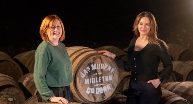 Pictured (L-R) at Midleton Distillery are Carol Quinn, Head of Archives at Irish Distillers; and Nodjame Fouad, CEO of Irish Distillers, alongside the original Murphy logo which represents the beginning of Midleton Distillery’s 200-year story.