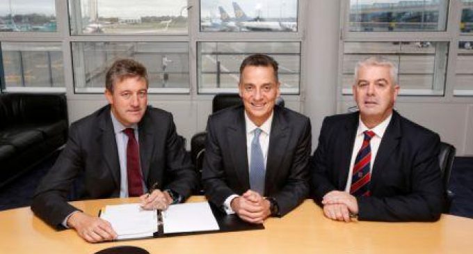 Pictured (L-R): Santiago Farré Dot, FCC Europe Director; daa Chief Executive Dalton Philips; and Roadbridge Managing Director Conor Gilligan at the North Runway contract signing at Dublin Airport.