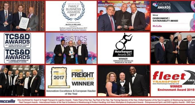 Specialist refrigerated transport and logistics company, McCulla Ireland, has been recognised both locally and at UK and all-Ireland industry events during the 2017 awards season. Between May and September, the family-run, Lisburn-based business was a finalist for 17 separate awards, eight of which the Company went on to win.